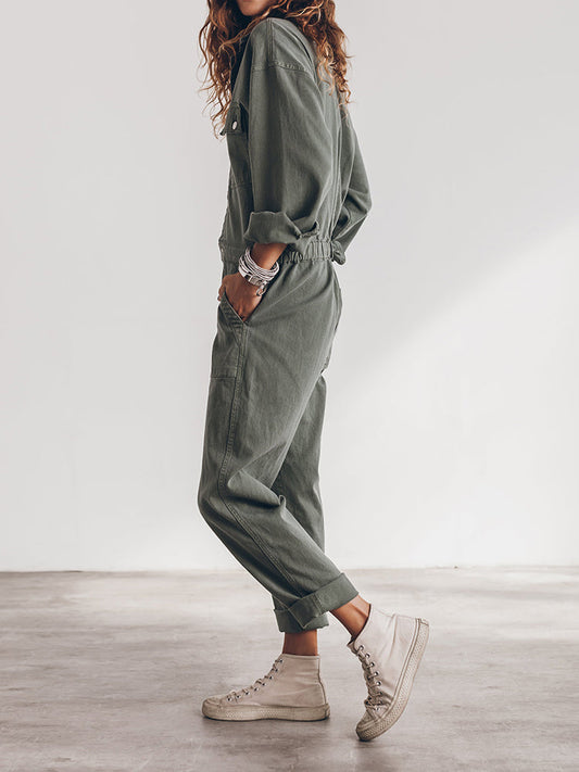 Stijlvolle Dames Utility Jumpsuit met Lange Mouwen en Zakken