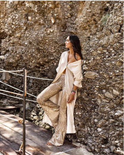 Glamoureuze Gouden Dames Broek met Pailletten en Wijde Pijpen