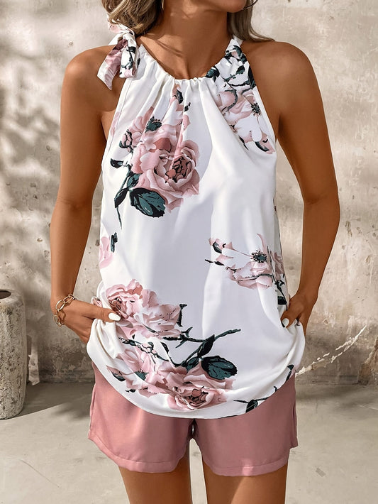 Billina | Set met Gebloemde Haltertop en Strikshort