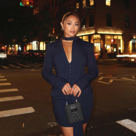 Gestreepte Blazer Jurk voor Dames met Diepe V-hals