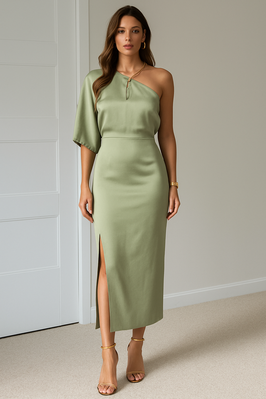50% KortingBrendy | Elegante One-Shoulder Satijnjurk