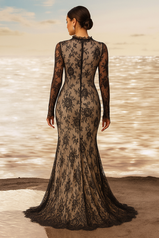 Luxe Dames Maxi Galajurk met Kant en Lange Mouwen