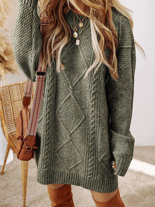 Gebreide warme dames jurk met col en stijlvol kabelpatroon