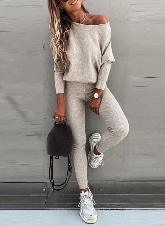 50% KortingTrendy Off-Shoulder Dames Trui Set met Legging