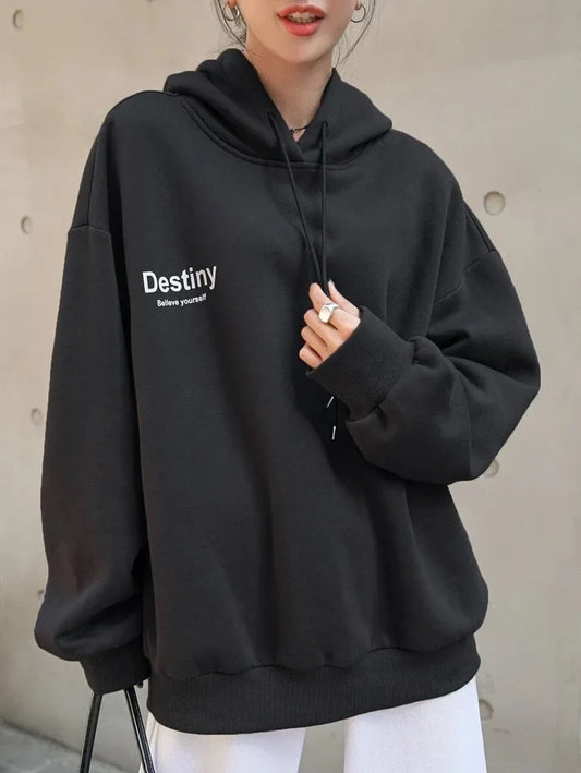 Oversized Zwarte Dames Hoodie met Capuchon en Print