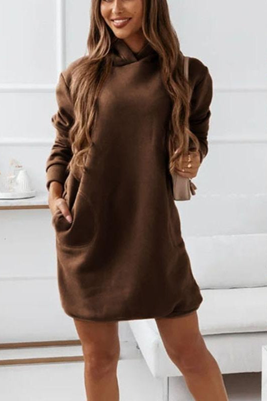 Comfortabele warme dames jurk met capuchon en zachte afwerking