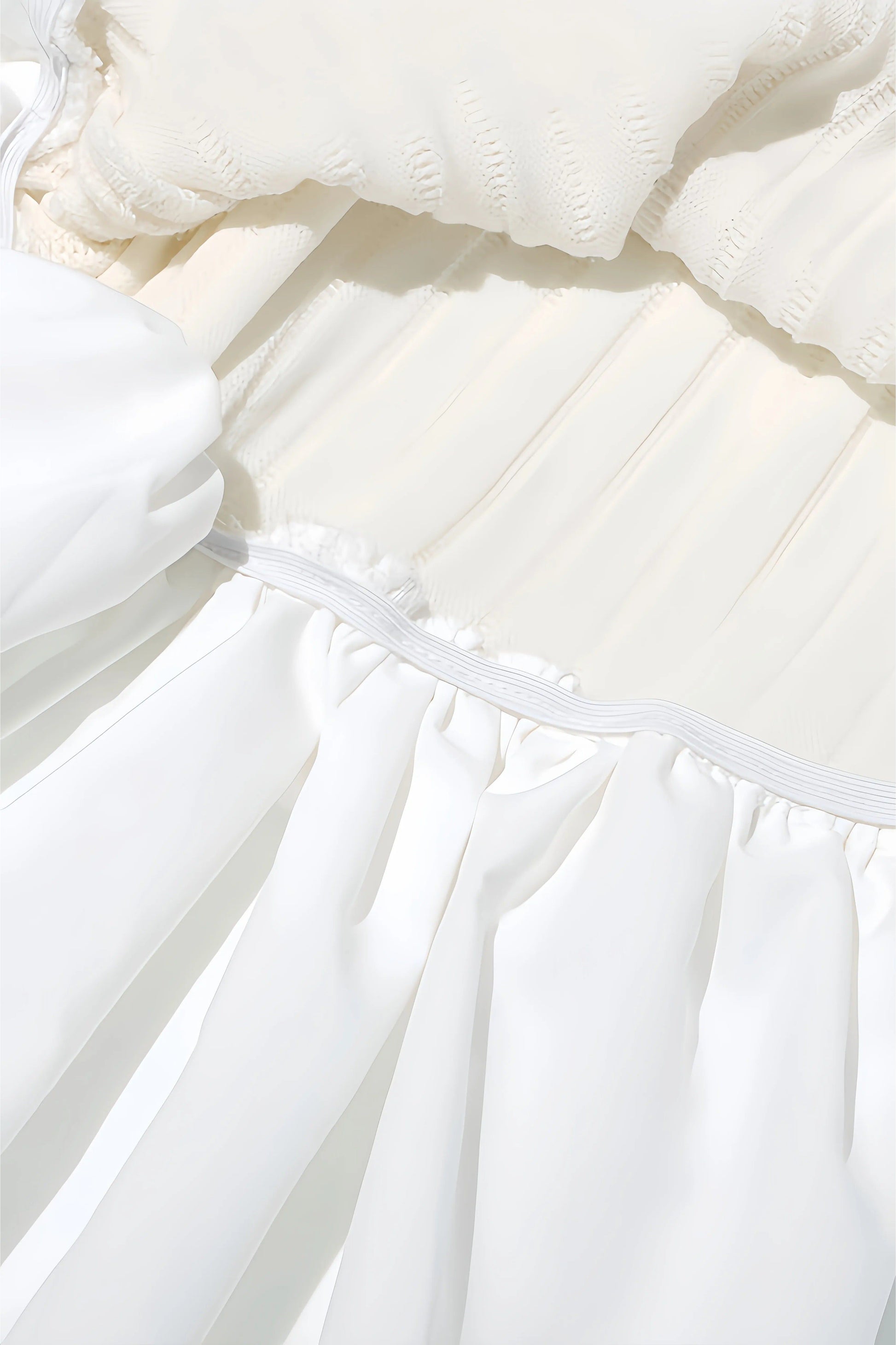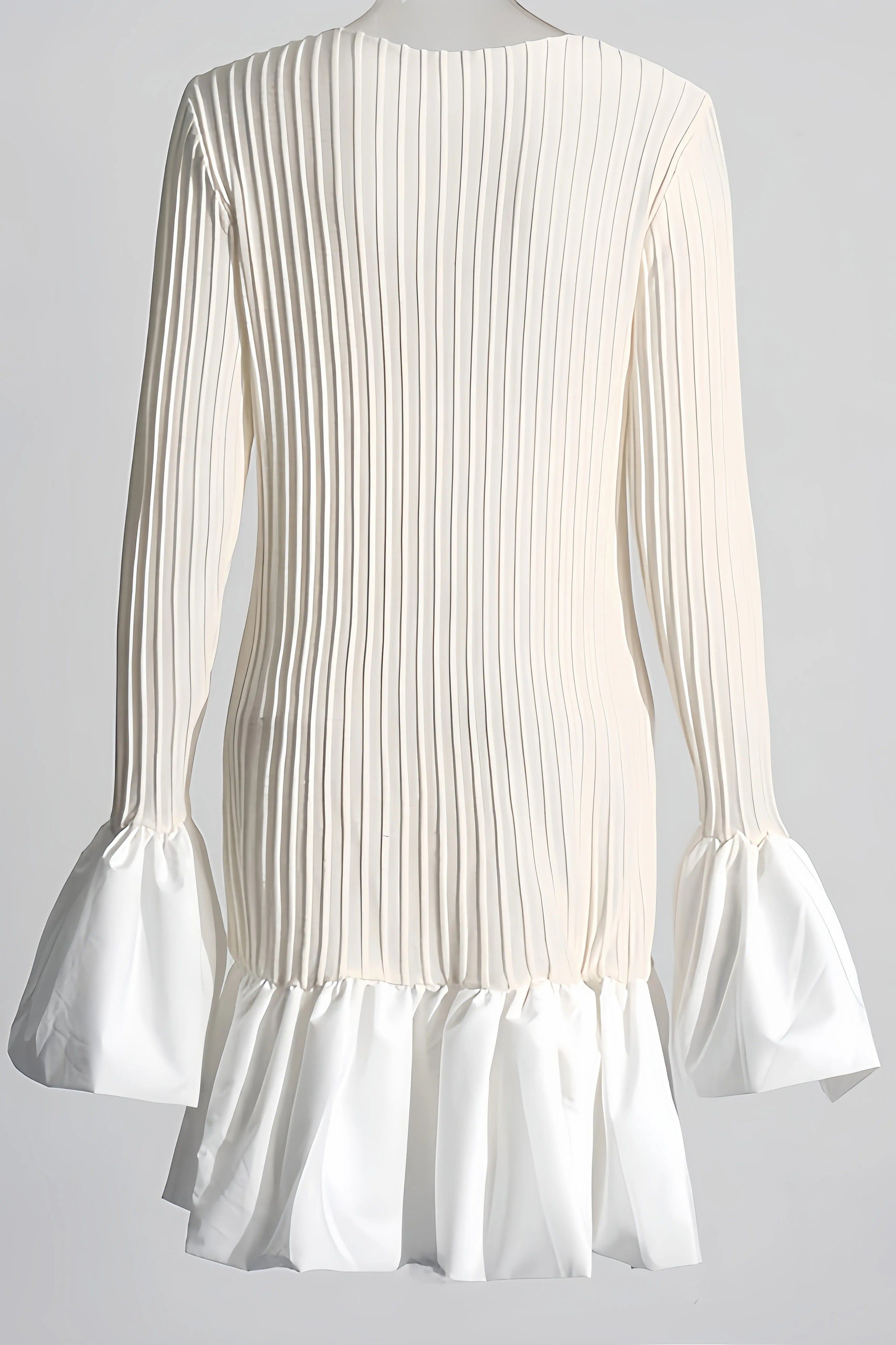 Verhef je look met de Clara Dames Elegante Geplooide Witte Jurk - Mini, een meesterwerk van textuur en elegantie. Deze jurk combineert verticale plooien met een speelse ballonzoom voor een unieke en luxe uitstraling. De uitlopende mouwen zorgen voor een luchtig gevoel, terwijl de aansluitende pasvorm je silhouet prachtig accentueert.