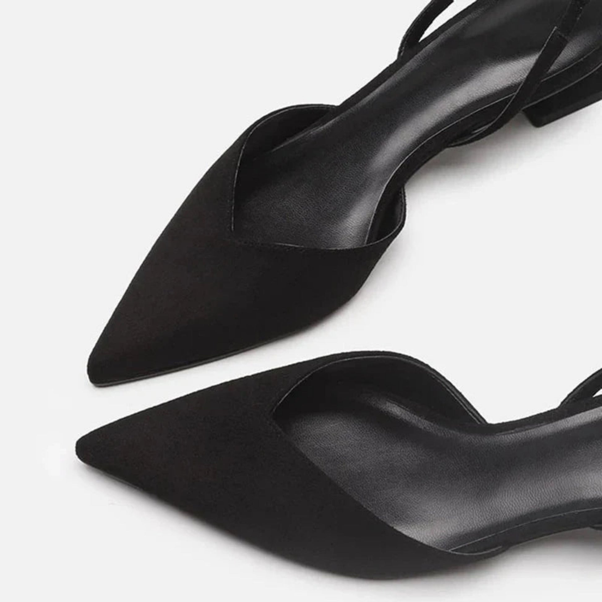 Onze Flavia Pumps combineren elegantie en draagcomfort in één stijlvol ontwerp. De spitse neus en de subtiele slingbackband zorgen voor een verfijnde uitstraling, terwijl de lage hak je voeten de hele dag ondersteunt. Dankzij het minimalistische design passen deze pumps perfect bij zowel zakelijke als feestelijke outfits.
