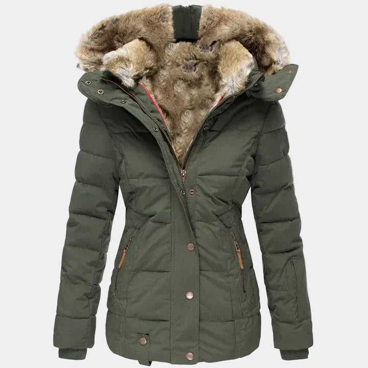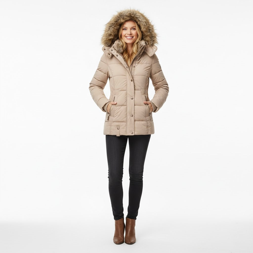 Gewatteerde Dames Winterjas met Afneembare Bont Capuchon en Rits
