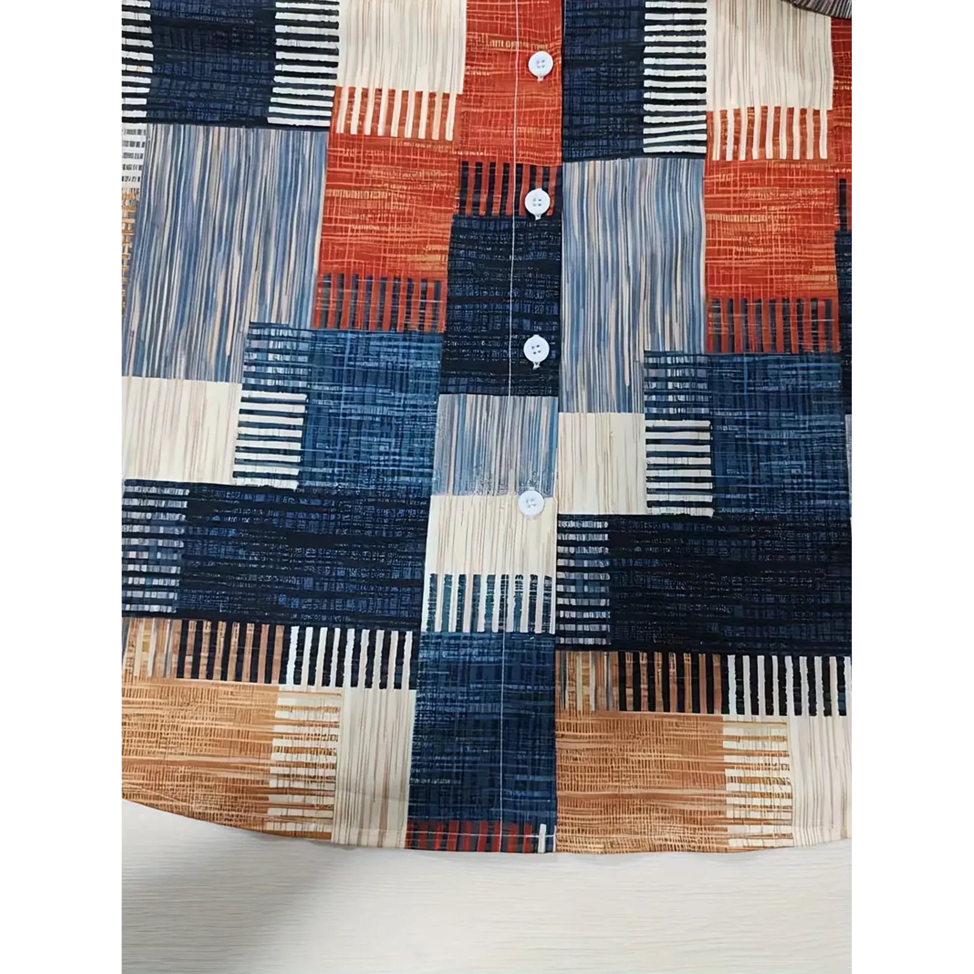 De Lyla Patchwork Blouse is een stijlvolle toevoeging aan je garderobe, met een uniek geometrisch design in warme aardetinten. Deze blouse combineert moeiteloos casual comfort met een trendy uitstraling. De lichte, ademende stof en de klassieke knoopsluiting maken het een veelzijdige keuze voor dagelijks gebruik.