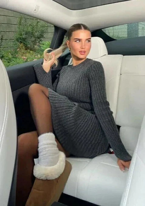 Noa | Gebreide Mini-jurk met Lange Mouwen