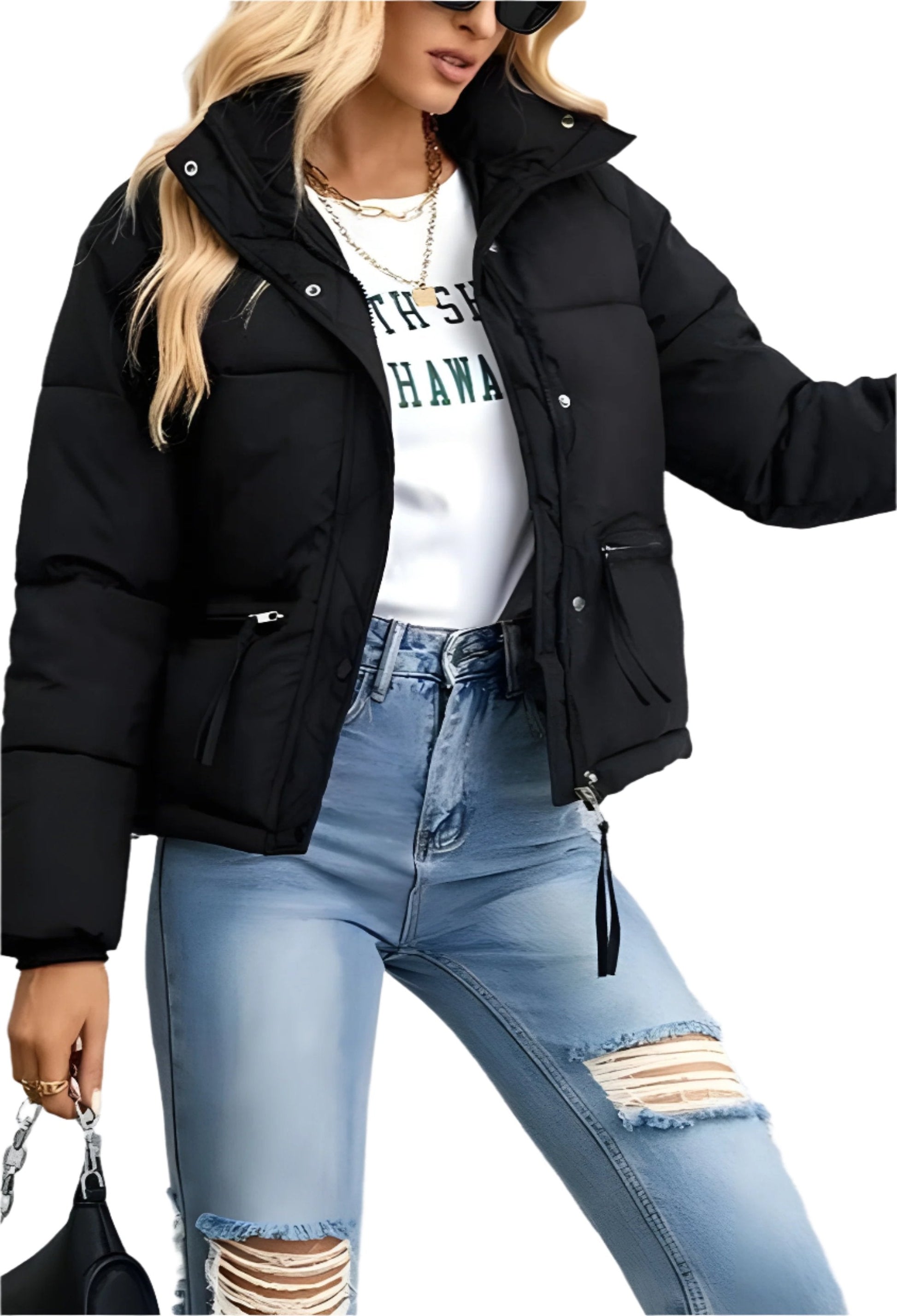 Trendy Warme Dames Puffer Jas met Rits en Hoge Kraag