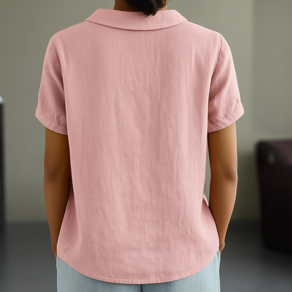 - Ontwerp: Klassieke kraag, korte mouwen, en relaxte pasvorm